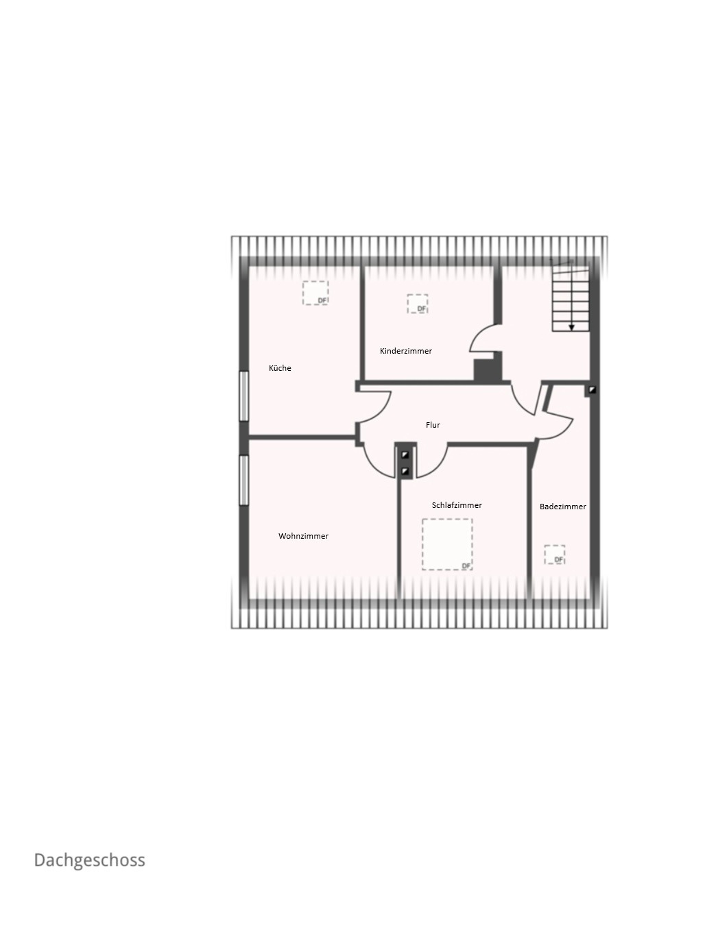 Die Wohnung befindet sich im 2. Obergeschoss (Dachgeschoss) der Immobilie und umfasst eine Gesamtwohnfläche von ca. 56 qm.